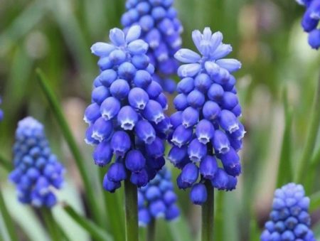 Grape Hyacinth (Muscari) are some of the very first bloomers in my spring garden. They have beautiful deep purple flowers and happily start to grow very early in the spring. – Grape hyacinths get their name from the tightly bundled florets that look like grapes at the tip of each flower. – There are many different types of hyacinths, but grape hyacinths aren’t related to them. – They have the grape clusters and they have a sweet-smelling aroma that’s especially prominent at night and during the early morning. – Each plant grows up to 12” and there are 1-3 stalks per plant. They sprout in early spring and usually result in colors that are blue and white. ***These can be grown in hardiness zones 3-9 and are super easy to grow.*** They’re a good plant for beginners that want to propagate from bulb or seed. If you don’t do anything but the bare minimum, they’ll likely reproduce so quickly you’ll need to prune them to keep them tidy. These pretty grape-like plants are a stunning addition to any garden with their blue clusters and fragrance.